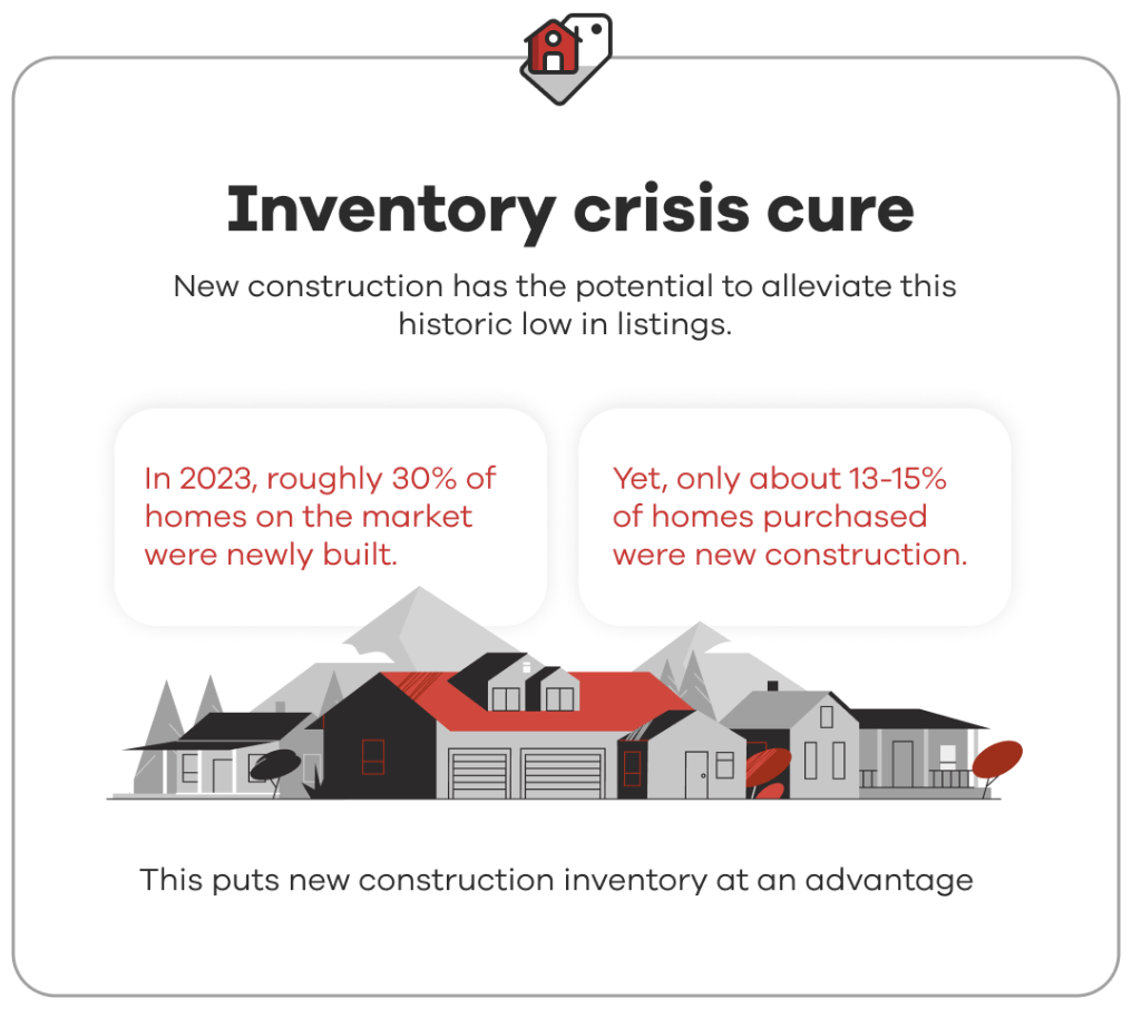 In 2023, roughly 30% of homes on the market were newly built, yet around 13-15% of purchases were new construction.