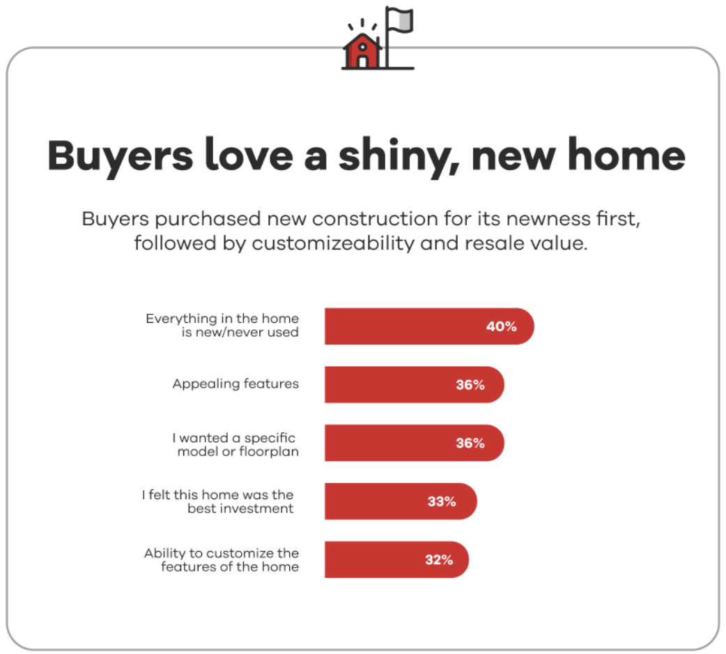 In fact, according to our survey, perceived high price is the top reason 2023 homebuyers cite for not considering new construction. Meaning, they didn’t even look at new construction homes because they just figured they couldn’t afford it.